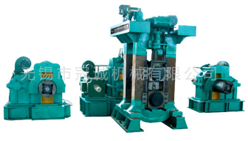 本機型由主電動機、減速機、人字齒輪箱(鋼件)、十字萬向接軸(配接軸托架)、工作機座左右液壓四棱錐漲縮卷取機、配測厚儀工藝臺架及托輥裝置(測厚儀自配),采用意大利安薩爾多二橋四象限弱磁調系統裝置、模擬恒張力控制方法,繼電系統控制采用可編程控制PLC(即西門子S7-200)等組成,輥系采用軋機專用軸承軸座、附有換輥裝置,壓下蝸輪副為二次包絡面。軋輥材質為9Cr2Mo。